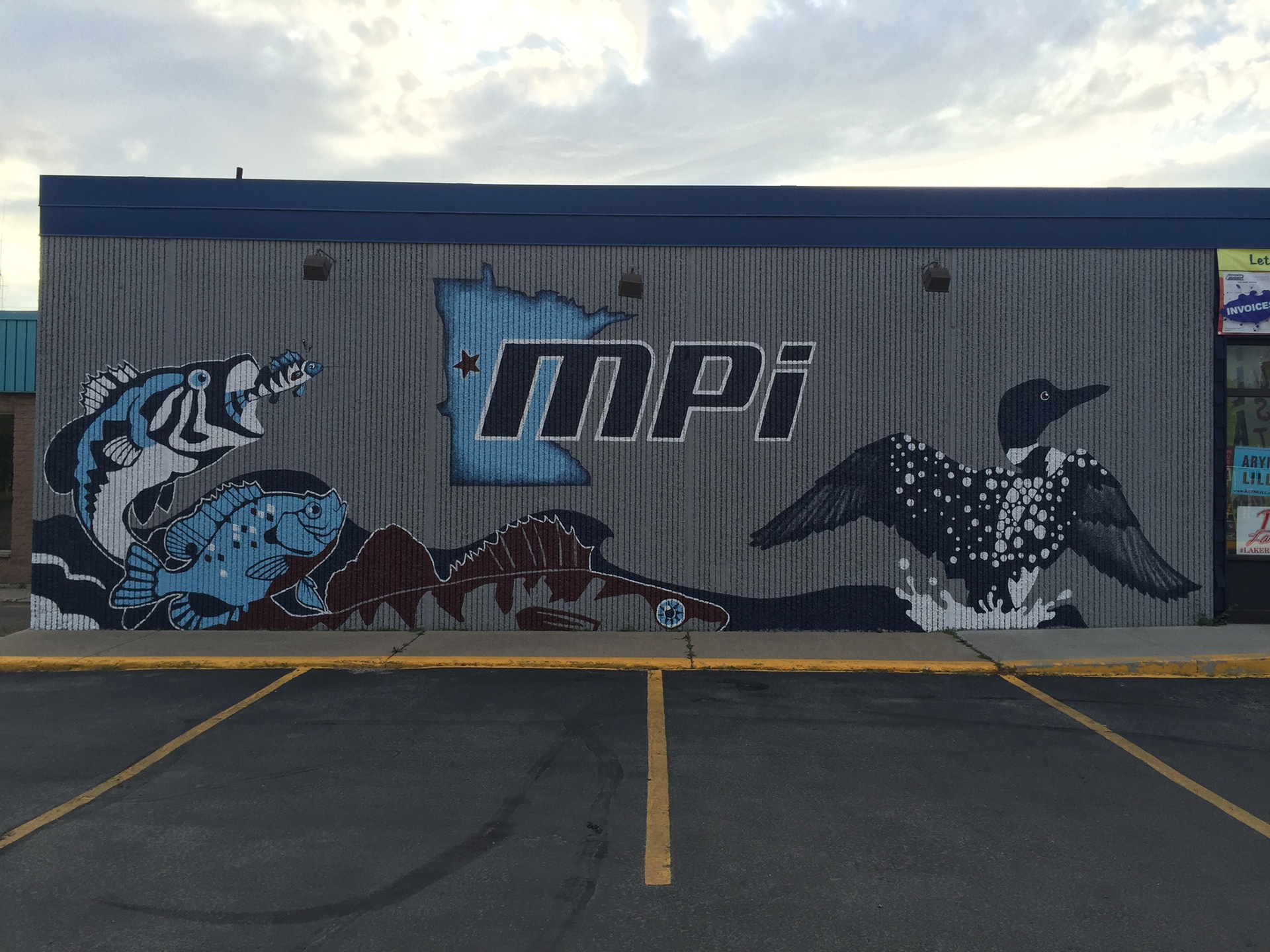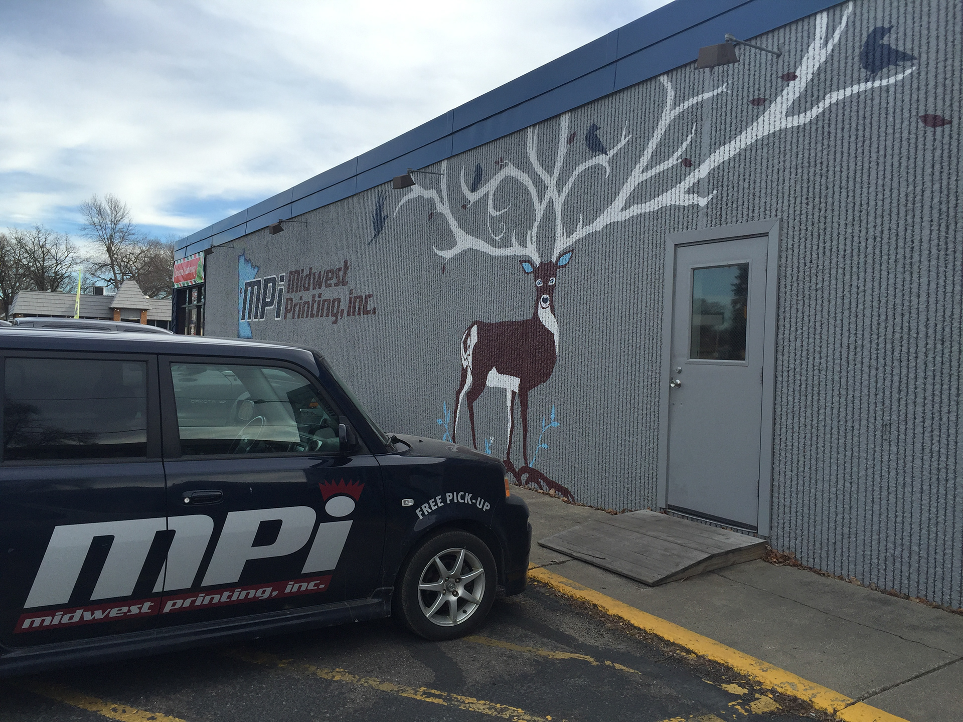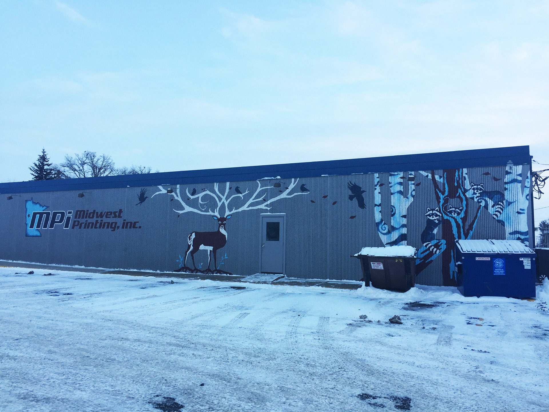 Logo design and mural on a family-owned print shop in Detroit Lakes, MN. Inspired by wildlife native to Minnesota, this wrap-around mural corresponds with the seasons summer, fall and winter.